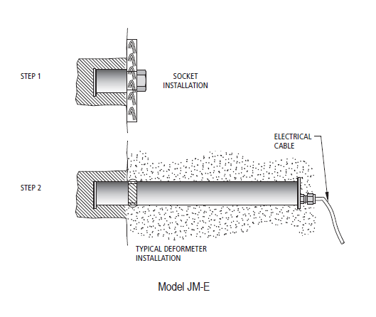 Các JM sử dụng một cảm biến dây rung gắn vào một mùa xuân căng giữa hai neo. Bất kỳ sự thay đổi nào về khoảng cách giữa các neo này sẽ làm thay đổi lực căng của dây. Cảm biến được bảo vệ bởi một vỏ thép không gỉ trượt.