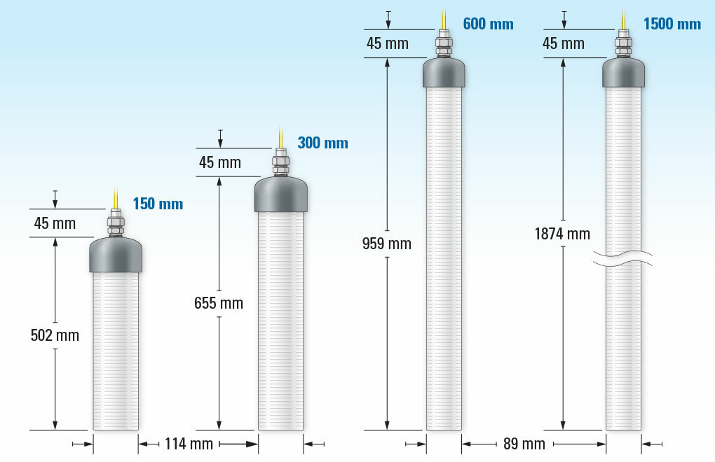 Phạm vi tiêu chuẩn¹ 150, 300, 600, 1500 mm