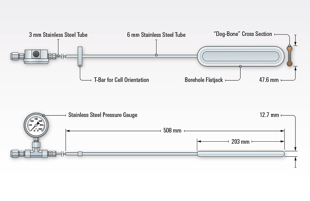 Thiết bị đo ứng suất hố khoan (BPC) được sử dụng để đo sự thay đổi ứng suất của đá và được thiết kế để bơm vữa bên trong lỗ khoan. BPC được sản xuất từ hai tấm thép hàn với nhau xung quanh ngoại vi của chúng. Các tấm được biến dạng thành cấu hình “xương chó” (tức là lỗ khoan phẳng) để chúng có thể được mở rộng dễ dàng mà không làm hỏng các mối hàn. Dầu thủy lực lấp đầy khoảng trống giữa hai tấm và một ống thép không gỉ áp suất cao kết nối các tấm với một đồng hồ đo áp suất bằng thép không gỉ và / hoặc một bộ chuyển đổi áp suất.